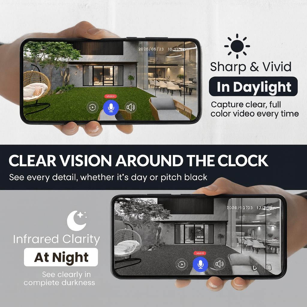 Even in the middle of the night, you can clearly see faces, monitor outdoor activity, and sleep with peace of mind.